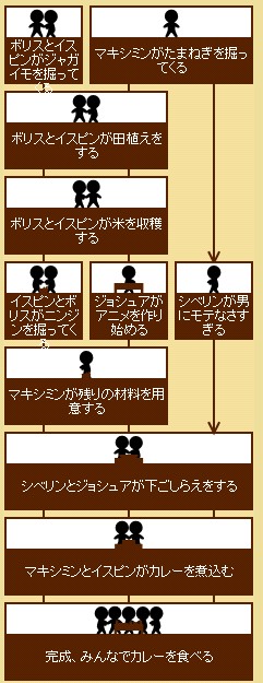 サイトで見かけた料理分担ジェネレータなるもので、適当にブリュレでも作りましょう(゜∀゜) 分担結果。 1) マキシミンが大根を掘ってくる 2) ボリスが笑いだす 3) マキシミンが残りの材料を用意する 4) ボリスとジョシュアがブリュレを作る 5) 完成、みんなでブリュレを食べる ブリュレに大根!!?:。`;:゙(゚ω゚`);`*;ブッ ボリスにはあえて何も言わん。 カレーでやってみた。 マキピン路線萌え(そこ) シベリンとジョシュアで下ごしらえとか恋のライバル同士白熱しそうです(何が) PS. TOS-ラタトスクの騎士 発売一周年おめ★ PR |