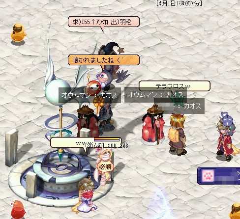 明日からカムバックイベントと新クエストがアップデートなようですhttp://www.4gamer.net/games/006/G000648/20090407030/ 新クエストで箱から海賊帽子(各色)(期限付)て!! 期限あり海賊の相場下がる予感。 手を出せない憧れ装備だったので手にするチャンスですね☆ 期限付きでも何度でもやれるのならOK☆ んだがゴミの確率高いとかそんなんじゃない事を願う。 あとカムバックイベ。誰でももらえる。素敵なものばかり^p^ 粋リュックとかって期限付きなんだろうけど大事にするb タマゴもいいな。 ティアさばが何やら昨日から大変だったようだけど、自キャラも無事か見に行ってみよう。 キャラチェンジには吹いた'`,、('∀`) '`,、 さて、今日は混乱5に何やら強いムスケルがいるから討伐をとのことで、駆けつけてみた。 |